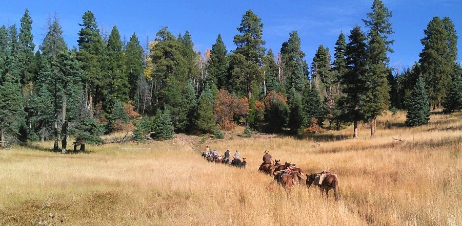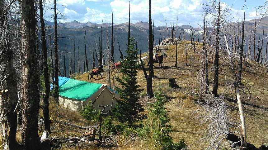 The terrain in Fawn Gulch Outfitters territory ranges from deep, remote, and heavily forested (Aspen and Spruce) canyons, to a beautiful flat mountain top ranging from 8,500 - 11,500ft, encompassing thousands of acres of timber and meadows, creating an ideal environment for both game and hunters. Each camp is ideally situated in the middle of an excellent hunting area* and requires a 1-6 hour pack in and out on horse back depinding on location.