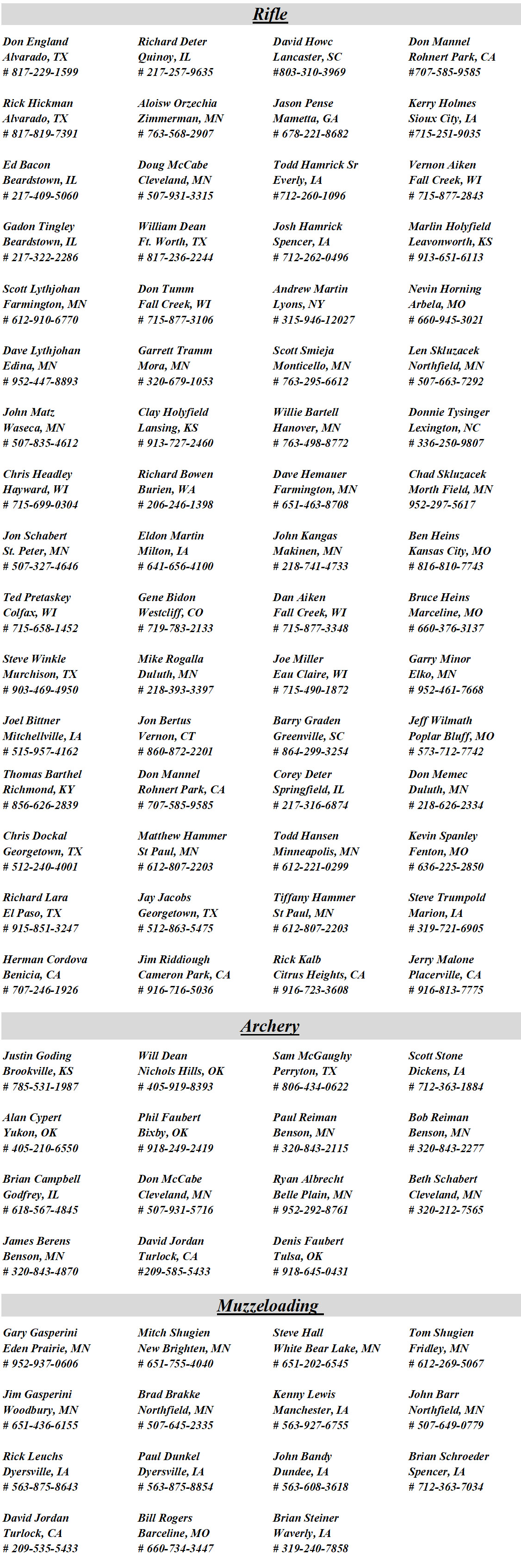 *Some of the contact info for indivudual hunters may have changed over time. If you are unable to contact a hunter below, please let us know so that we can update their contact information.
